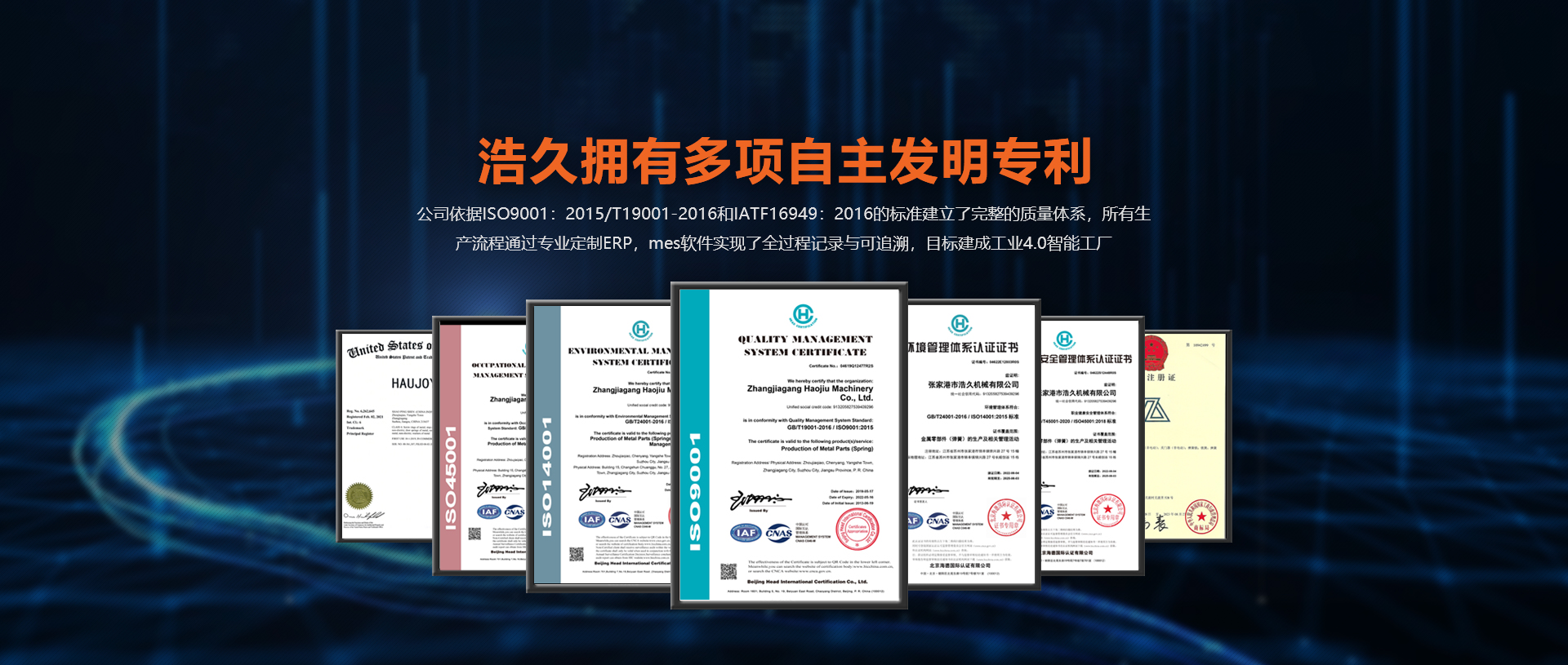 浩久擁有多項自主發(fā)明專利。公司依據(jù)ISO9001GB/T19001-2016和IATF:2016的標準建立了完整的質量體系,所有生產(chǎn)流程通過專業(yè)定制ERP,mes軟件實現(xiàn)了全過程記錄與可追溯,目標建成工業(yè)4.0智能工廠。